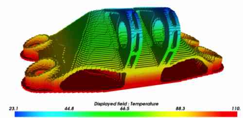 - Solve the thermo-mechanical or thermal finite element analysis simulating the printing process